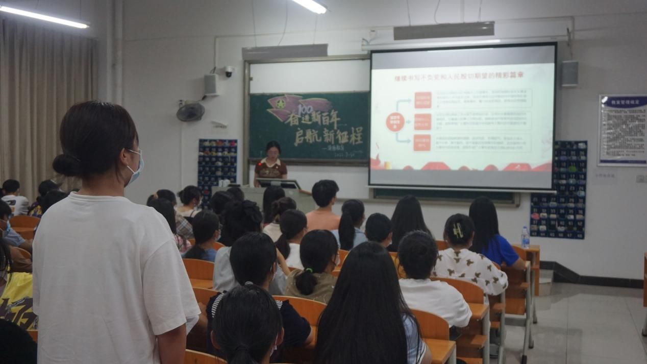 活动以嘹亮的团歌拉开序幕,各班团支书带领大家学习党史PPT、观看相关视频,回顾了中国共产党领导广大青年在革命、建设、改革不同历史时期接续奋斗、建功立业的伟大历程,引领同学们坚定理想信念,感悟党领导中国青年运动的百年光辉历程。同学们积极参与到党史答题之中,表达了热爱祖国、热爱共青团的美好心声。