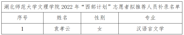 因学生自愿放弃,BD半岛bandao·(中国区)官方网站开展了2022年“西部计划”志愿者拟推荐人员补录工作。现将补录名单公示如下: