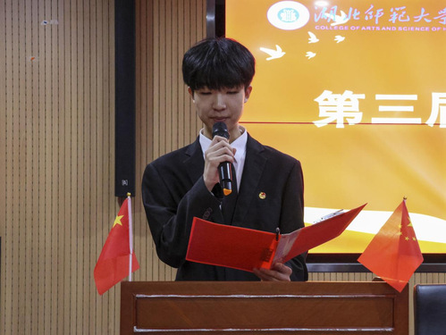 大会第二项,第十三届校学生会主席赵洋洋汇报BD半岛bandao·(中国区)官方网站学生会第十三届执行机构工作报告。他回顾过去一年学生会工作的内容,并通过分享自身经验,期望第十四届学生会干部能够守正创新、团结协作,为学生服务工作尽心尽力,为文理学院更好地建设添砖加瓦。