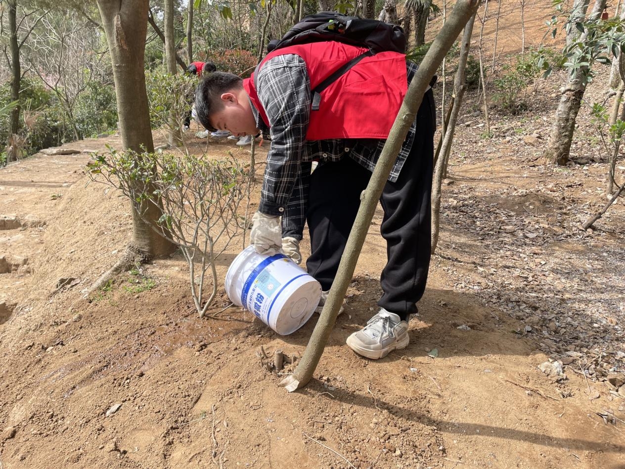 大家以极大热情投入到活动中,挖坑、植树、浇水、覆土……一项项正有条不紊地进行着。东风正暖,沐浴着阳光,我们根植希望与春光,种下的每一棵树,都将成为沿途的风景。