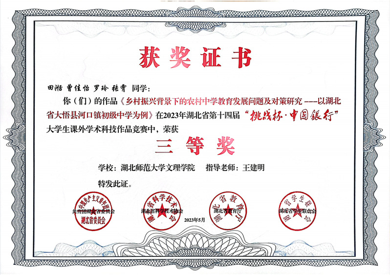 (通讯员:苏祎)5月23日,在团省委、省科协、省教育厅、省学联共同主办的湖北省第十四届“挑战杯•中国银行”大学生课外学术科技作品竞赛中,BD半岛bandao·(中国区)官方网站四个项目荣获三等奖!