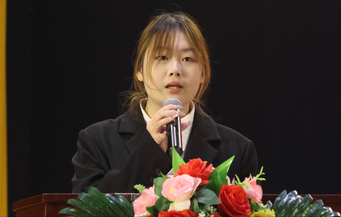 优秀青支队代表陈珍和优秀志愿者代表张恋分别上台进行发言,她们对能为学校和社会服务而感到幸运和骄傲,同时也期望能有更多青年人投身于志愿服务。