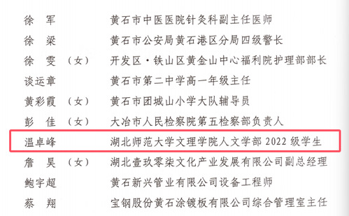 黄石市优秀共青团干部