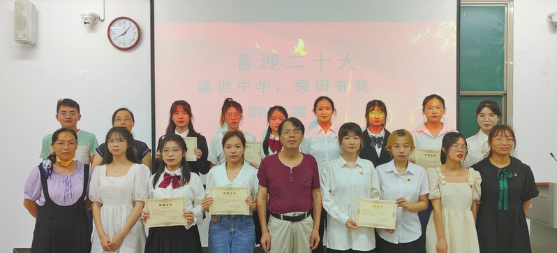 915日晚,人文学部学习部于教学楼1B101成功举办了以“喜迎二十大,盛世中华,强国有我”为主题的朗诵比赛。其旨在弘扬爱党爱国精神,习近平重要讲话的精神,传递红色积极正能量。