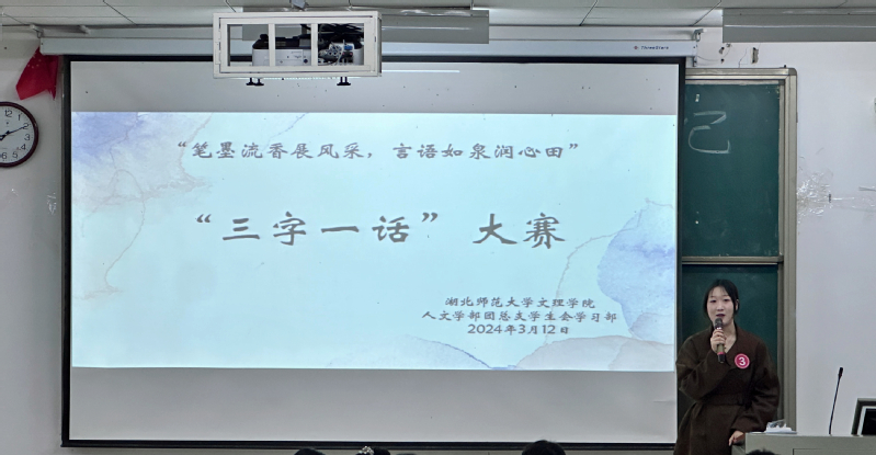 为了弘扬新时代雷锋精神践行人文学子的初心与使命,进一步增强师范生职业技能,提高口语表达能力展现人文学部未来教师的风采,为教育事业注入新的活力。人文学部团总支学生会学习部在教学楼 1B101 举办了“笔墨流香展风采,言语如泉润心田”主题普通话演讲比赛。人文学部团总书记胡文玉老师、学生第一党支部书记高悦老师、团学活动指导老师杨峰、宣传部指导老师程胜伟、学部辅导员丁书嫚和黄安琪老师担任比赛评委。