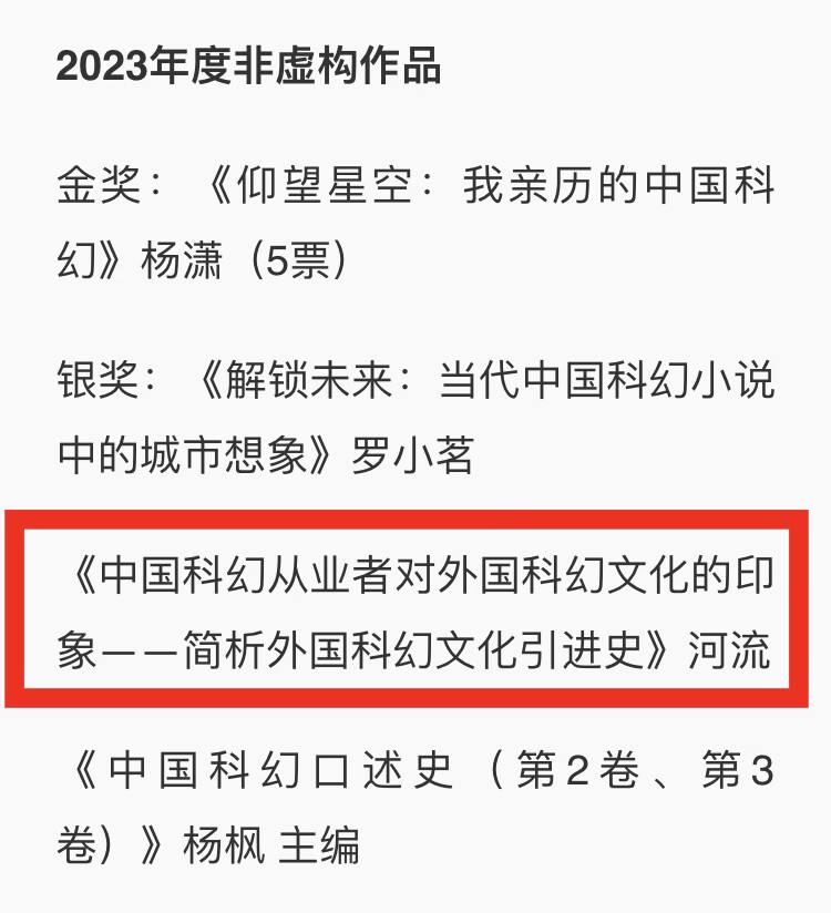 人文学部22级中文专业学生温卓峰荣获第十五届华语科幻星云奖非虚构作品银奖