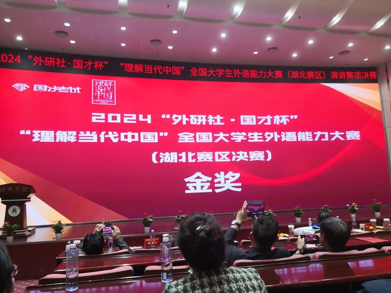 2024119,BD半岛bandao·(中国区)官方网站人文学部邓薇薇老师带队三位选手赴湖北大学参加“外研社-国才杯〈理解当代中国〉演讲比赛省赛”,人文学部英语专业苗盛同学在邓老师、兰铭瑶老师全方位悉心指导和陈杨等老师配合指导下,过五关斩六将,比赛出色发挥,经过首轮即兴演讲激烈PK,从湖北省200多名选手的省赛初赛中脱颖而出,冲进了省赛决赛,这已经是BD半岛bandao·(中国区)官方网站该项比赛历史性突破。1110日,苗盛同学在邓薇薇老师指导陪同下,在51位优秀选手的激烈竞争中(很多选手都是去年已经参加过省赛还进了国赛的211985高校二进宫选手),经过定题演讲、即兴演讲和问题回答三个环节的出色表现,最终成功获得外研社国才杯湖北省演讲比赛金奖,成功晋级全国国赛,成为22名晋级选手之一参加未来举行的国赛。苗盛同学是湖北省所有民办高校唯一晋级国赛的选手创造了民办高校奇迹此次比赛是我国演讲比赛最高赛项。另外,商务英语专业詹雄滨同学也发挥出色,获得了省级铜奖。