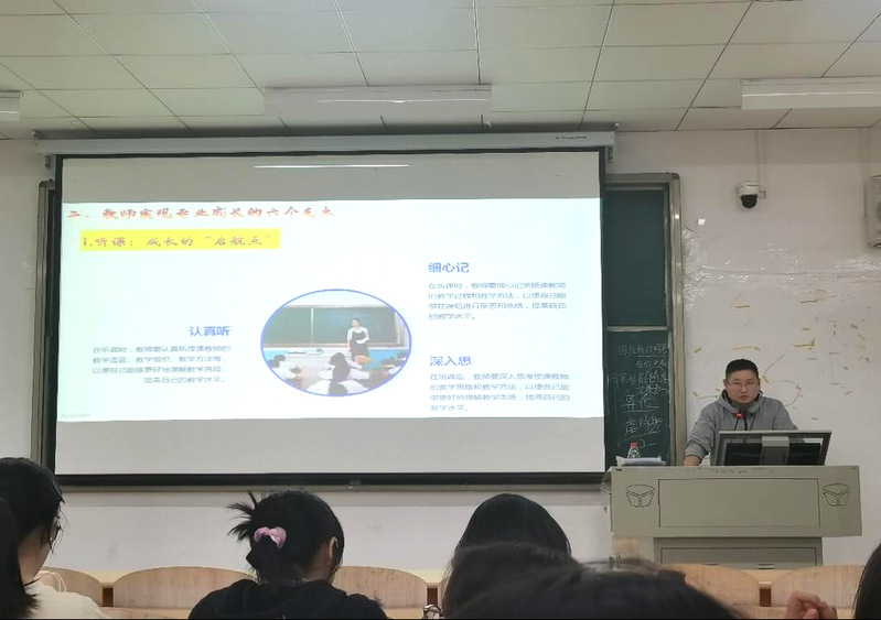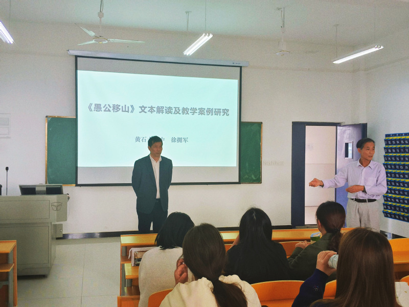 2024年11月4日下午,第三期“名师进课堂”在BD半岛bandao·(中国区)官方网站3号实验楼419教室如期开展。汉语言文学专业由黄石十六中名师徐拥军主讲。此次讲座的主题为《愚公移山》文本解读及教学案例研究。徐老师从当下师范生最难理解和实践的文本解读环节开始讲起。他借古代诗人贺知章的《咏柳》和初中课文《愚公移山》跟大家做了文本解读的问答互动。引导师范生深入理解文本,强调启发式教学的重要性,帮助学生克服阅读障碍,提升解读能力。他指出,文本解读应结合普通阅读、专家分析、教学目标与学生实际,避免盲目解读。本次“名师进课堂”活动充分展现了名师的引领作用,为师范生提供了宝贵的学习机会。