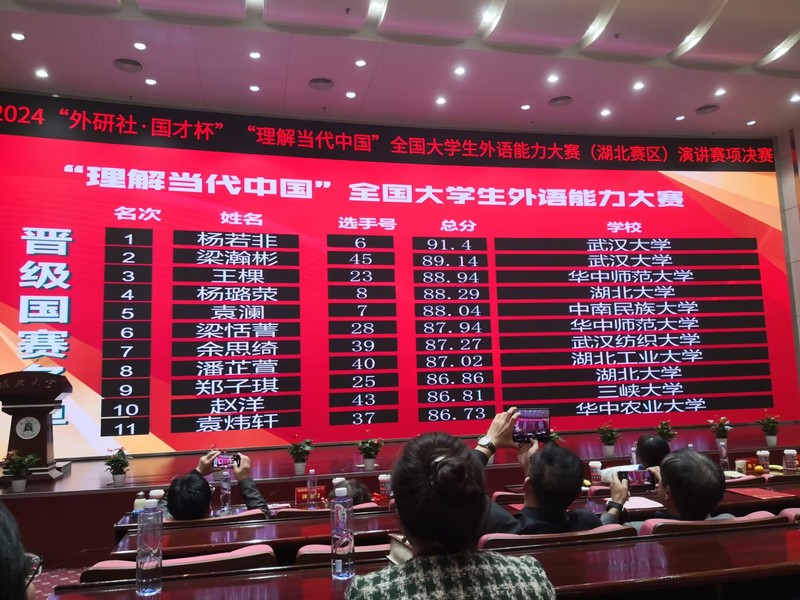 2024年11月9日,BD半岛bandao·(中国区)官方网站人文学部邓薇薇老师带队三位选手赴湖北大学参加“外研社-国才杯〈理解当代中国〉演讲比赛省赛”,人文学部英语专业苗盛同学在邓老师、兰铭瑶老师全方位悉心指导和陈杨等老师配合指导下,过五关斩六将,比赛出色发挥,经过首轮即兴演讲激烈PK,从湖北省200多名选手的省赛初赛中脱颖而出,冲进了省赛决赛,这已经是BD半岛bandao·(中国区)官方网站该项比赛的历史性突破。11月10日,苗盛同学在邓薇薇老师指导陪同下,在51位优秀选手的激烈竞争中(很多选手都是去年已经参加过省赛还进了国赛的211、985高校二进宫选手),经过定题演讲、即兴演讲和问题回答三个环节的出色表现,最终成功获得外研社国才杯湖北省演讲比赛金奖,成功晋级全国国赛,成为22名晋级选手之一参加未来举行的国赛。苗盛同学是湖北省所有民办高校中唯一晋级国赛的选手,创造了民办高校奇迹!此次比赛是我国演讲比赛最高赛项。另外,商务英语专业詹雄滨同学也发挥出色,获得了省级铜奖。