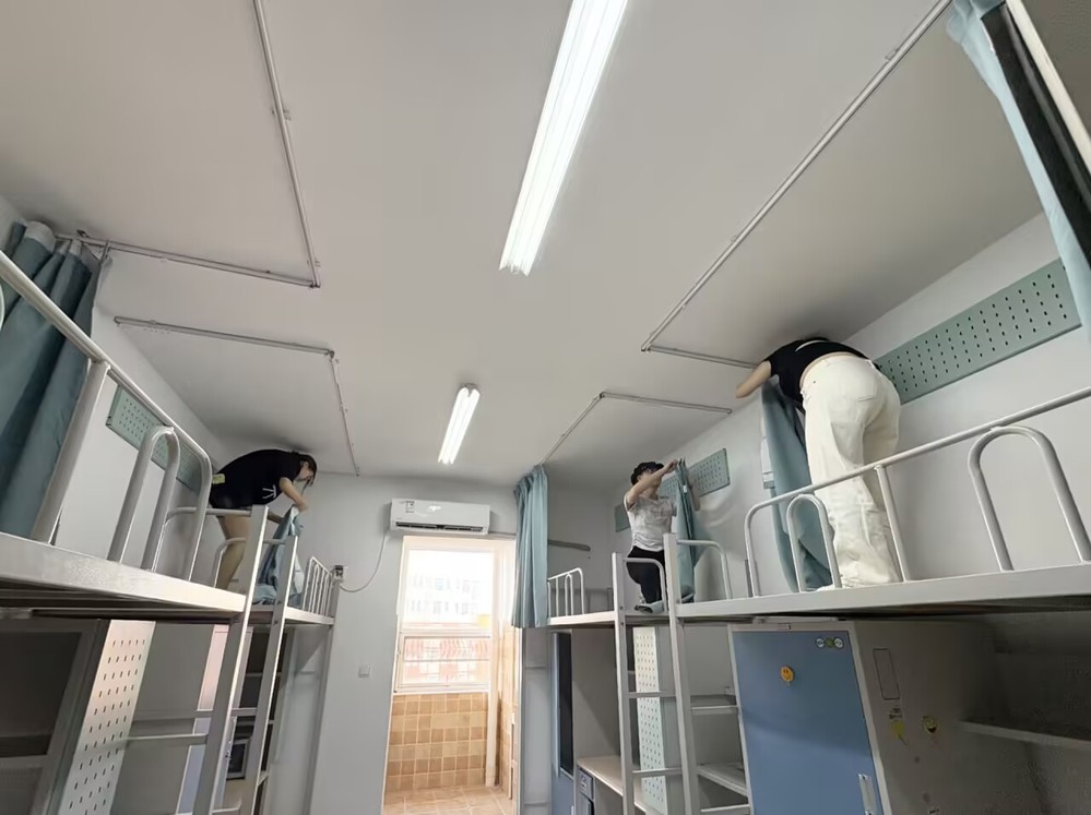 行动伊始,学院党总支副书记孙梦晨特别叮嘱志愿者们注意操作安全、做好个人防护,并对大家的热情奉献表示感谢,这份关怀为活动注入了满满动力。师生们分为多个小组,对8栋、10栋共230间新生宿舍进行了全覆盖、无死角的细致排查。从门窗锁具、家具稳固,到水电安全、卫生清洁,每一处都严格查验、详实记录、及时报修,确保设施完好可用。志愿者们还统一为每张床铺安装床帘,为新同学营造私密、舒适的休息空间。大家用汗水传递真情,期盼新生在这里感受到家一般的温暖。历经近5个小时的排查与整理,学院2025级新生宿舍保障任务圆满完成。此次行动既体现了学院对迎新工作的高度重视,也展现出师生志愿者们务实严谨、热情奉献的良好精神风貌。新学院,新家园,新起点,智能交通与应用学院将继续秉持“以生为本”的理念,扎实开展各项迎新服务工作,陪伴2025级新生扬帆起航。