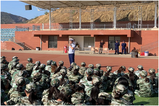 培训课上,开发区消防救援大队陈钊参谋向学校2400余名新生宣讲了消防法律、法规,结合火灾案例,对火灾特点、消防器材使用、火灾逃生自救和发生火灾如何正确报警等进行了详细讲解,并现场对干粉灭火器、消防水带的使用等进行了实地操作演示,手把手指导学生进行灭火器实地操作训练。