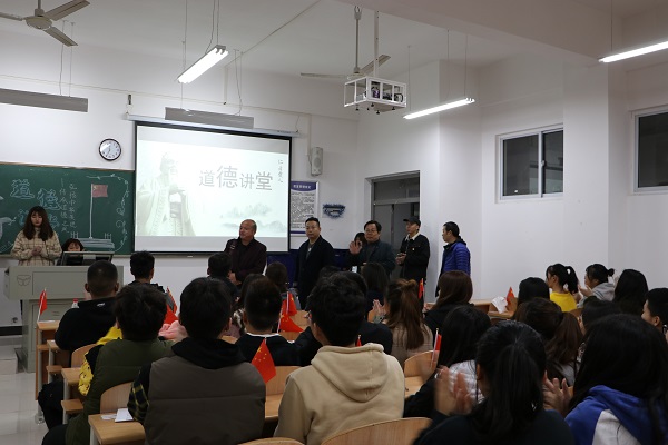 活动共分为讲美德、唱美德、学模范、讲故事、诵经典、省自身、谈感悟、送祝福八个环节,通过播放模范道德人物短片,现场问答,畅谈感想,使同学们深刻认识到新时代进步青年应该以“传承道德之风,践行中华美德”为己任,做一个有道德的人。在完成所有环节后,活动在全体师生制作并交换祝福卡片中圆满结束。