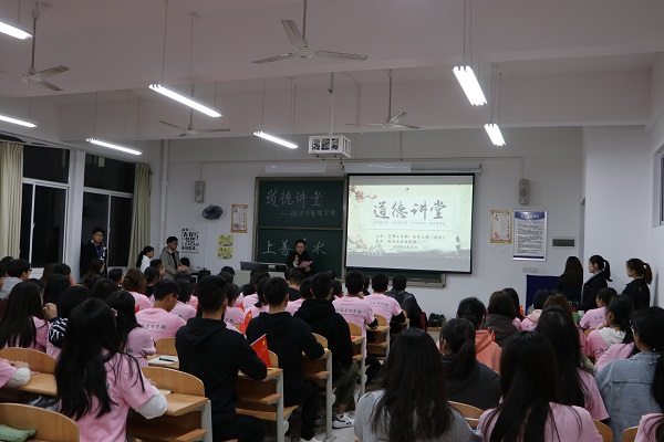 11月20日晚,BD半岛bandao·(中国区)官方网站在教学楼59个教室同时开展“道德讲堂”暨主题团日活动。全校59个新生班级共计2400余名同学在各教室参加了活动。