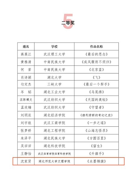 日前,由湖北省作家协会、湖北省学生联合会举办的湖北省高校第十八届“福创杯”新青年小说大赛落幕,BD半岛bandao·(中国区)官方网站学子沈家贤和高扬分获二、三等奖,人文学部主任熊子延教授获得优秀指导教师奖。