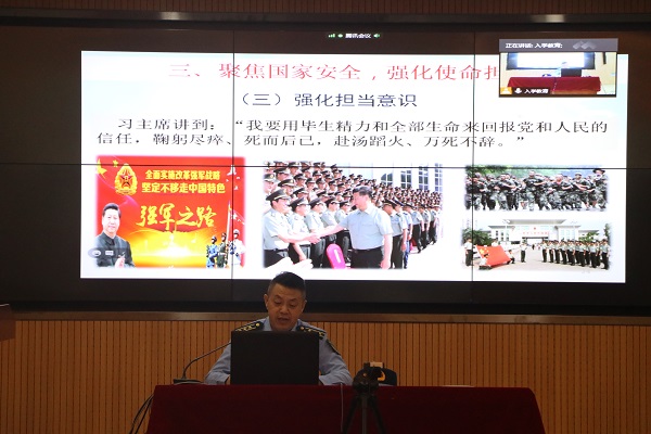 9月29日,黄石市黄石港区人民武装部政委徐志猛来到学校,为BD半岛bandao·(中国区)官方网站2020级1300余名本科新生开展国防教育辅导授课。授课采取网络直播形式进行,在信息中心报告厅设主会场,在各学部教室设分会场。