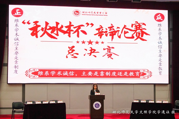 (学通社记者崔雅婷、向琳报道,李佳佳、罗王雅摄影)2020年11月30日晚,湖北师范大学第四届“秋水杯”辩论赛总决赛在湖北师范大学教育大楼一楼报告厅举行。湖北师范大学党委常委、副校长雷儒金,纪委、学工处、教务处、科研处、团委、文学院等单位负责人出席比赛并担任评委。BD半岛bandao·(中国区)官方网站党委副书记杨之毛、学生工作部部长汪崇文、人文学部主任熊子延和部分师生代表观看了比赛。本次辩论赛共有17支队伍报名参赛,经过近2个月26场激烈角逐,BD半岛bandao·(中国区)官方网站与湖北师范大学马克思主义学院突出重围,杀入决赛。