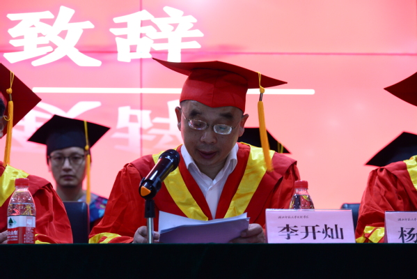 校学位委员会主席、院长李开灿致辞,表达对2021届全体毕业生的深情祝福,并对即将远行的同学们谆谆叮嘱:一是希望同学们敢于直面困难、应变求成,成为正能量的守护者;二是希望同学们发扬理性精神、团结协作,成为正能量的传播者;三是希望同学们勇立时代潮头,奋斗担当,成为正能量的践行者。