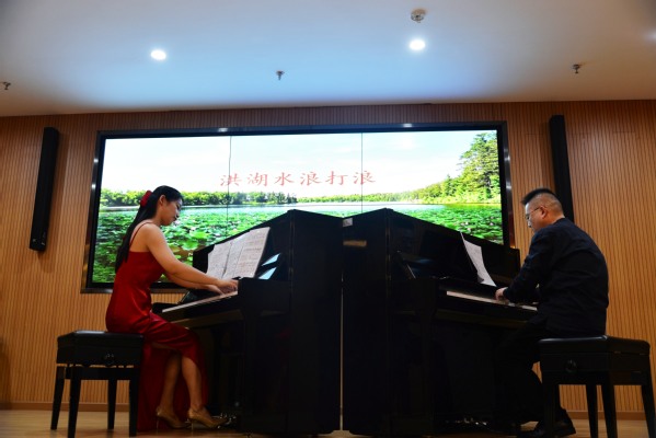 音乐会开场曲目《洪湖水浪打浪》由华中师范大学涂波副教授和BD半岛bandao·(中国区)官方网站教师陈依恒演奏,瞬间点燃了现场的氛围;随后的钢琴独奏以及10首由19名钢琴专业学生精心准备的四手联弹钢琴曲令观众陶醉;此外《瑶族舞曲》、《云宫讯音》、《梁祝》等曲子也赢得满堂喝彩。