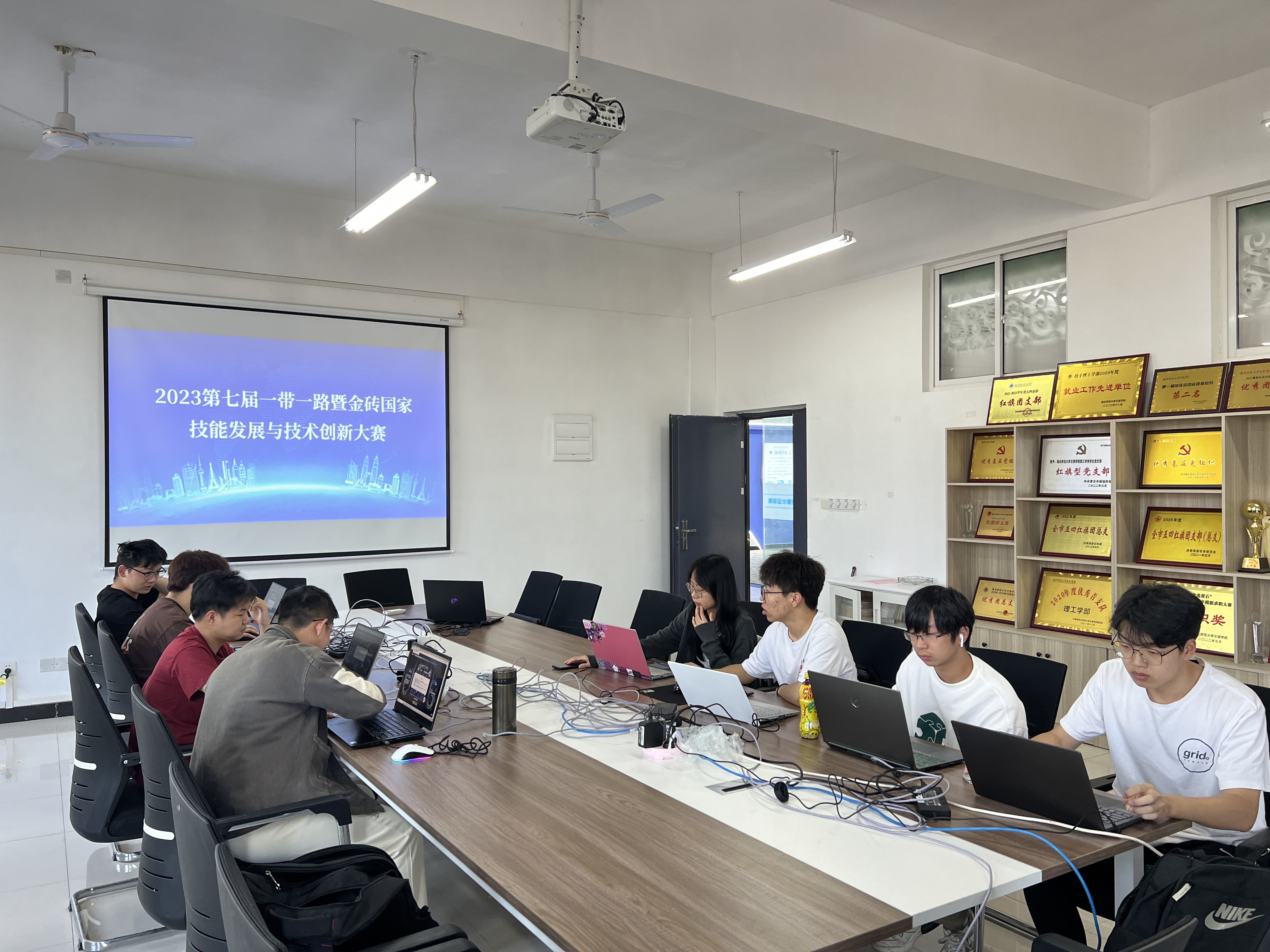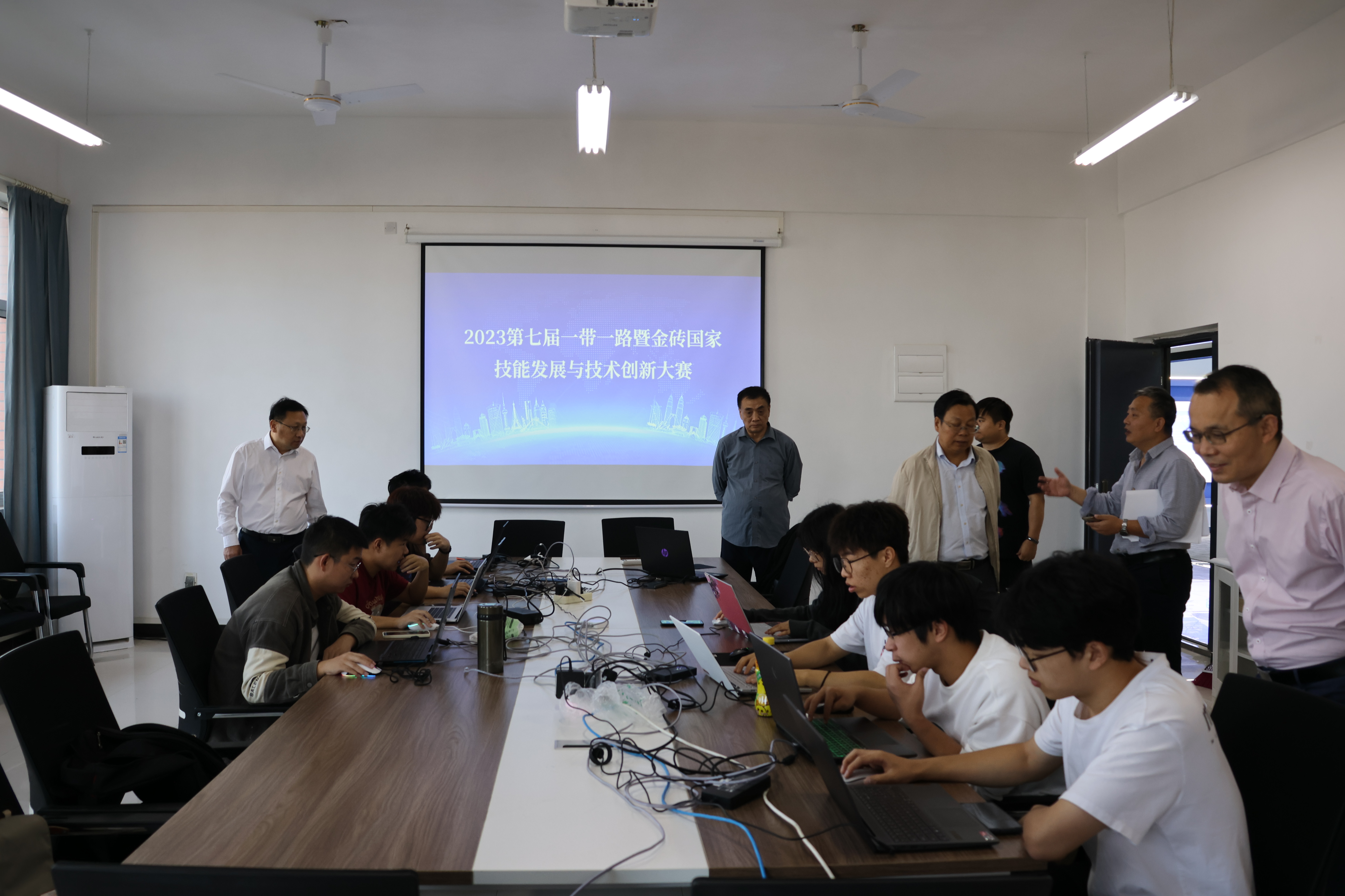 2023年10月18日上午9点,BD半岛bandao·(中国区)官方网站党委书记杨邓红,党委副书记之毛,副院长王胜国,宣传部部长陶晚成等一行领导莅临理工学部实验楼311赛场,现场看望本次参加2023年第七届一带一路暨金砖国家技能发展与技术创新大赛的师生们,并预祝学部3个小组在大赛中都取得好成绩。本次赛事次大赛为国际赛事,理工学部共有3个小组(12人)参赛,时间从上午9到12点,全程近4个小时!