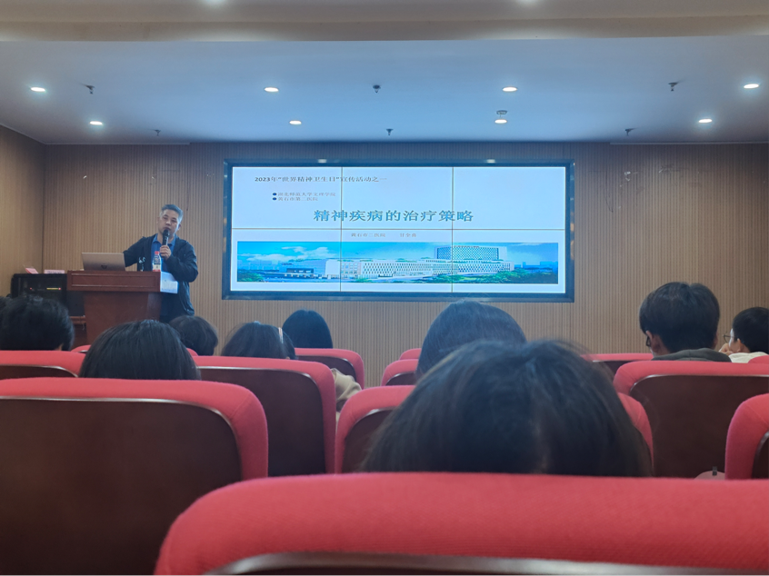 为助力本次心理健康月的正式开展,晚上19:00,BD半岛bandao·(中国区)官方网站心理中心邀请到黄石二医院精神心理科主任甘全喜医生主讲“精神疾病的治疗”。甘医生首先介绍了精神疾病的总体分类、病因、特点、诊断、简史和治疗。指出精神疾病不同于其他疾病,其精神疾病器质性症状到后期才会显现。随后甘医生对妄想、抑郁症、躁狂症、双向情感障碍、人格障碍及性心理障碍等病症进行了详细介绍。讲座的最后,甘医生其独到的见解为在场的同学答疑解惑,赢得了一致好评。随着讲座的谢幕,本次心理健康月启动仪式正式谢幕。
