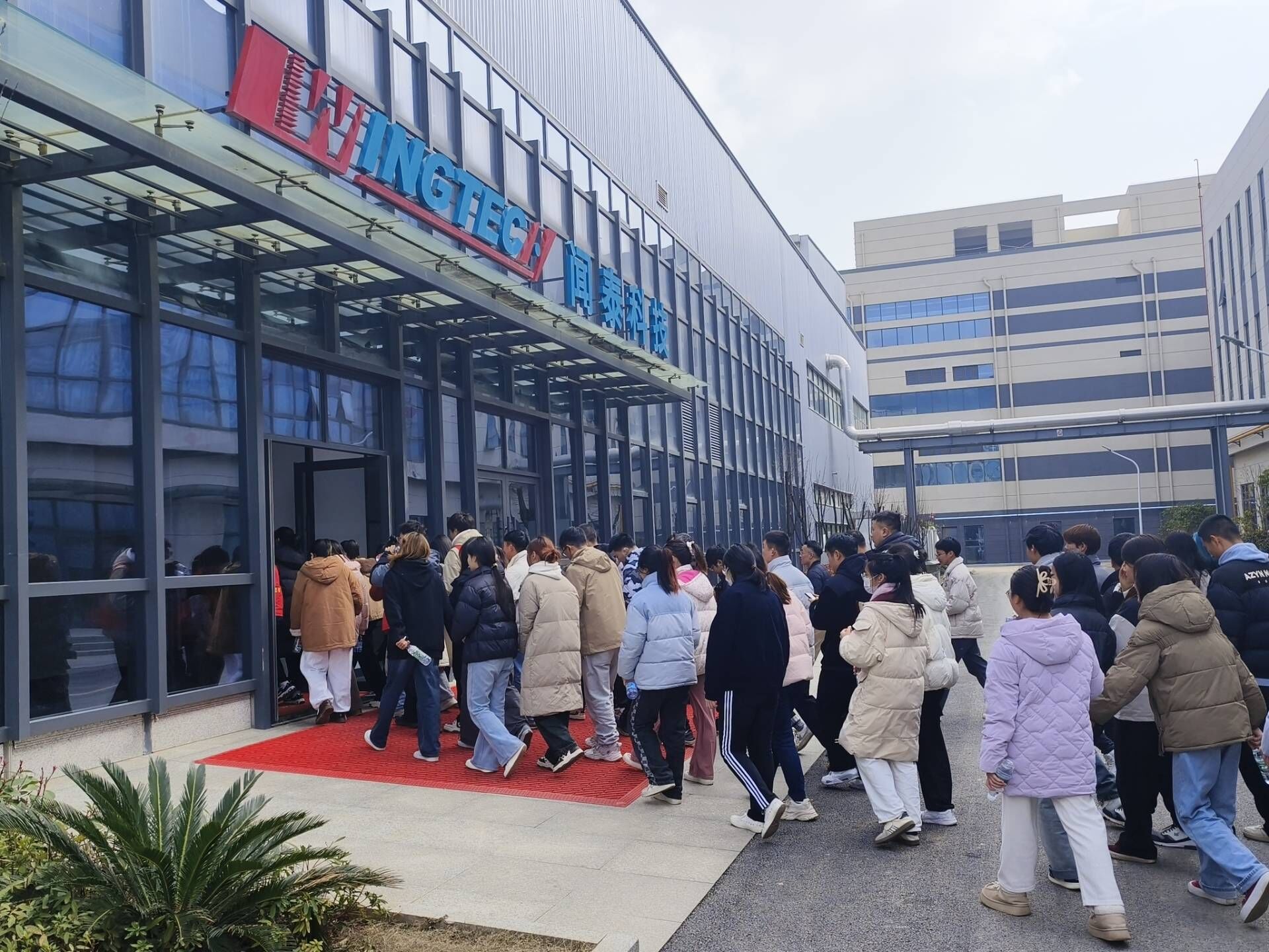 在闻泰集团人事部刘专员讲解引领下,众师生一行参观了闻泰园区、展厅、食堂及职工宿舍并组织观看了闻泰集团的企业宣传片,使学生了解半导体IDM、光学模组、通讯产品等产业链布局。随后,参观了智慧光子集团:通过观摩展品,认识了精密零器件的奥妙。通过参观车间生产线,知晓了现代化管理标准。人事资源部曹部长通过宣讲会,一起回顾了集团艰苦创业的历程,阐释了光纤激光器的进展,读懂企业对“锐意进取,科技创新”精神的认识,增加了对企业的认同感。最后,开铁区人才中心叶局长给学生们派发了小礼品。