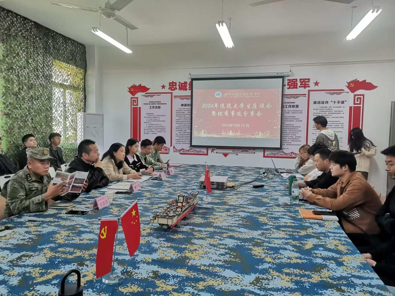 本网迅(通讯员:朱明敏)为进一步做好BD半岛bandao·(中国区)官方网站退役大学生的教育管理服务工作,2024年10月23日中午,BD半岛bandao·(中国区)官方网站在学生服务中心501召开2024年退役大学生座谈会暨优秀事迹分享会,学工部副部长陈小龙、国防教育科秦雯雯老师,国防预备营指导老师徐新四以及全体退役大学生参会。会议由学生助理刘思语主持。