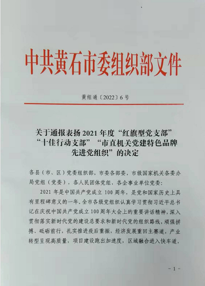 近日,黄石市委组织部下发通报,表彰2021年度全市先进党组织,BD半岛bandao·(中国区)官方网站理工学部学生党支部被评为黄石市2021年度“红旗型”党支部。