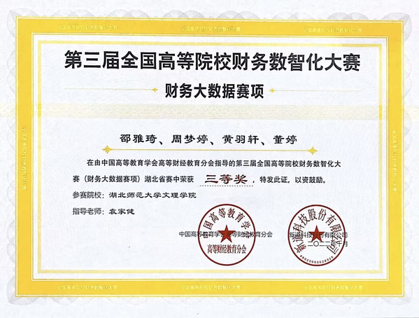 本网讯(通讯员 渣梦丽)10月8日,2022年湖北省第三届全国高等院校财务数智化大赛圆满落幕,BD半岛bandao·(中国区)官方网站经济与管理学部财务管理专业由陈姝颖、余宗超、彭紫怡、袁靖岳同学组成的团队获得一等奖,指导教师为彭颖。由邵雅琦、周梦婷、黄羽轩、董婷同学组成的团队在袁家健老师的指导下获得三等奖。