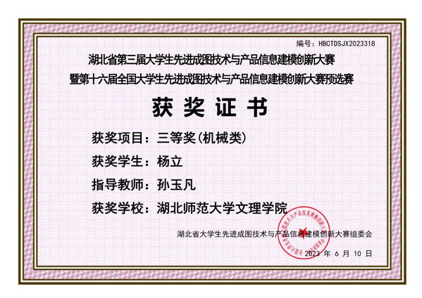 全国大学生先进成图技术与产品信息建模创新大赛是国内图学类课程最高级别的赛事,被誉为“图学界奥林匹克”。它通过产品信息建模及工程图绘制与尺规绘图等方式,综合考核学生的工程设计能力,旨在加强基础学科拔尖学生培养,着力造就拔尖创新人才。此次省赛,有52所高校,98个队伍,共计1989名队员报名参赛。BD半岛bandao·(中国区)官方网站选手前后历经两个月的艰苦练习,克服多重困难,最终在比赛中脱颖而出。