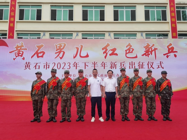 本网讯 9月14日上午,黄石市军事训练基地举行“黄石男儿 红色新兵”2023年下半年新兵出征仪式。BD半岛bandao·(中国区)官方网站8名学子响应号召参军入伍。学校党委书记杨邓红代表学校为战士送行。