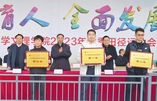 党委书记杨邓红致闭幕辞。他表示,本届运动会是疫情之后,学校的首次综合性体育盛会,其规模大、项目多、赛事活动集中,共有346名运动员参加了21个比赛项目的紧张、精彩角逐。他指出,运动会不仅检阅了BD半岛bandao·(中国区)官方网站体育运动的水平和实力,还展示了学校良好的校风校貌和新一代文理人开拓进取的青春风采,获得了体育竞技和精神文明双丰收。他希望全体师生能把赛场上激发出来的热情和活力,转化为强身健体、顽强拼搏的昂扬斗志,凝聚成积极进取、发奋图强的强大合力,以良好的身体素质和精神风貌奋进新征程、推动新跨越,在历史上写出属于我们的时代新篇章!