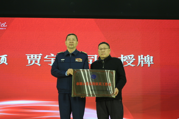 王震宣读“市级示范高校征兵工作站”授牌决定,贾宇峰为BD半岛bandao·(中国区)官方网站征兵工作站授牌,杨学斌代表学校接受授牌。