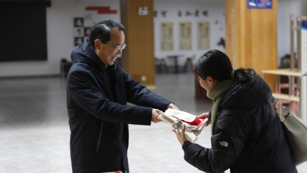 “入馆有礼”,上午8点,学子们便在图书馆门口排队等候入馆,借阅图书、查阅资料、复习备考。张志华、王胜国为入馆的前三十名读者赠送了图书馆定制礼品一份,并对同学们表达了新学期的祝福,并希望BD半岛bandao·(中国区)官方网站广大师生可以常走进图书馆,与圣贤为伍、与经典为伴、与智慧同行。