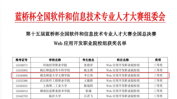 本网讯(通讯员 熊姿)6月4日,备受瞩目的第十五届“蓝桥杯全国软件和信息技术专业人才”大赛圆满落幕。BD半岛bandao·(中国区)官方网站腾讯云大数据产业学院李江涛同学凭借扎实的编程功底和创新的解题思路,荣获国赛三等奖,省赛一等奖。