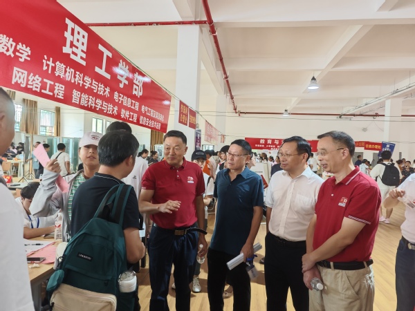 在新生报到处,雷儒金一行亲切慰问迎新一线的工作人员和学生志愿者,向有关部门详细了解了新生报到情况及住宿安排、入学手续、后勤服务保障等情况,对各学部(学院)特色纷呈、保障有力的迎新服务工作和学校的转设转型工作表示肯定。他们对师生员工的辛勤付出表示感谢,并强调,迎新工作要以人为本,关爱学生,要做好防暑降温工作,以热心、耐心、周到的服务,确保迎新工作的顺利进行,让新生称心,家长放心,社会满意。