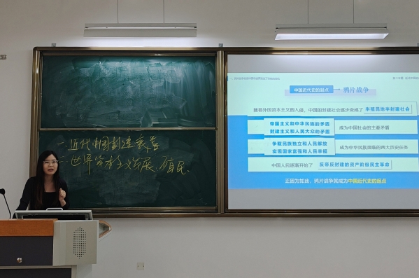 思政组比赛中,唐见平、邓小钇、刘茜、陈文丽四位教师分别围绕“新民主主义社会向社会主义过渡的必然性”“鸦片战争前后的中国与世界对比”“《大决战》与新民主主义革命理论的实践印证”“新发展格局的战略意义”等主题展开教学。参赛教师通过精心的课程设计、生动的案例分析和富有感染力的语言表达,展示了深厚的理论素养和灵活的课堂驾驭能力,教学特色鲜明。