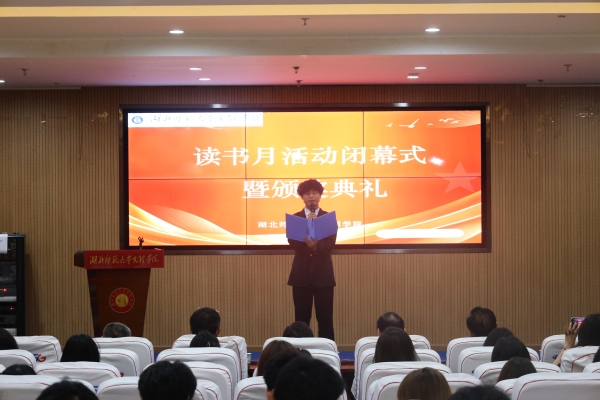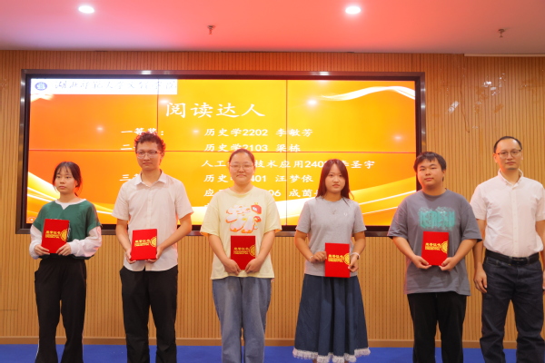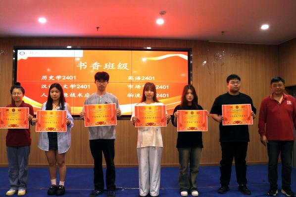 闭幕式表彰了本届读书月各项优胜单位和个人,人文学部荣获“书香学部”,历史学2401班、英语2401班、汉语言文学2401班、人工智能技术应用2402班、市场营销2401班和物流管理2401班荣获“书香班级”,李敏芳10位同学荣获“阅读达人”荣誉称号,张力等7位同学分别荣获“科技与人文:经典作品中的未来想象”征文比赛一二三等奖,吴超然等10位同学分别荣获“码上寻书”比赛一二三等奖。