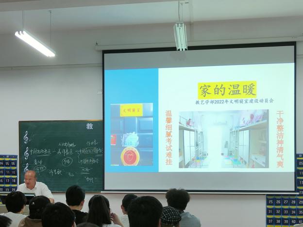 为了做好学部疫情防控工作,倡导学生讲究环境卫生和个人卫生,推动学生宿舍的文明建设,共创整洁舒适的生活环境。教育与艺术学部于2022年4月12日晚19:00在实验楼1-403开展“文明寝室建设动员会”活动。学部男生寝室长应邀参加,总支书记组织本次动员会。