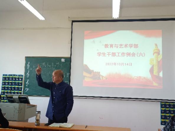 2022年10月14日中午12:00,在实验楼1-403多媒体教室组织召开学生干部工作例会。学部辅导员,全体团学会干部及各专业班级负责人参加例会,例会由总支书记李先华主持。