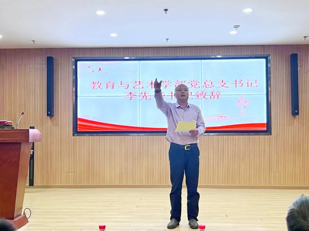 20221031日晚630,教育与艺术学部在信息中心报告厅隆重举行第七届团学会成立大会。本次大会邀请了学工部副部长陈小龙、理工学部党总支副书记肖圣芳、人文学部党总支副书记汪玉宝、学部主任王文教授、党总支书记李先华老师、学部全体辅导员以及各学部代表和成员。