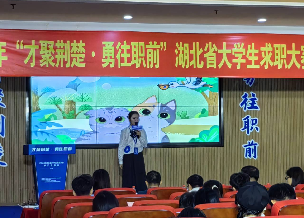 9月26日上午9:00,2023年“才聚荆楚·勇往职前”湖北省大学生求职大赛黄石选拔赛于BD半岛bandao·(中国区)官方网站图书馆报告厅举行。来自黄石市四所高校的12位选手同台竞技,全力以赴,展现风采。比赛共有四个环节,分别为自我介绍、才艺展示、情景模拟、现场问答。教育与艺术学部的李婷同学以新颖的自我介绍方式,精彩的才艺展示,良好的反应能力获得了评委的好评,也获得了在场观众的阵阵掌声。李婷同学最终以89.7的高分,排名第四,荣获优胜奖。