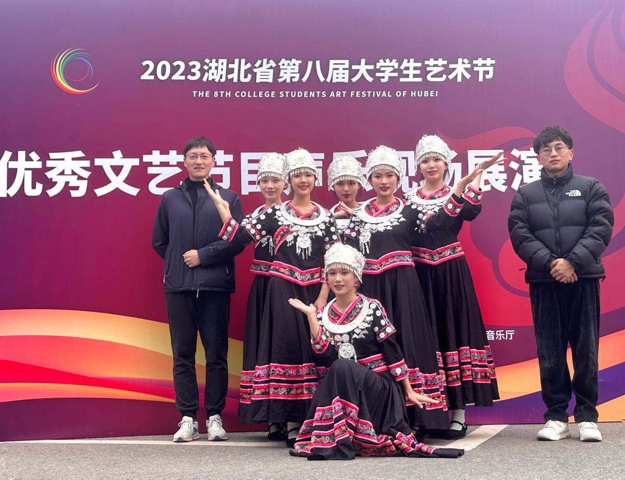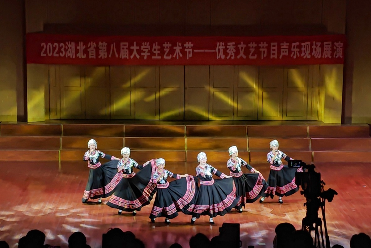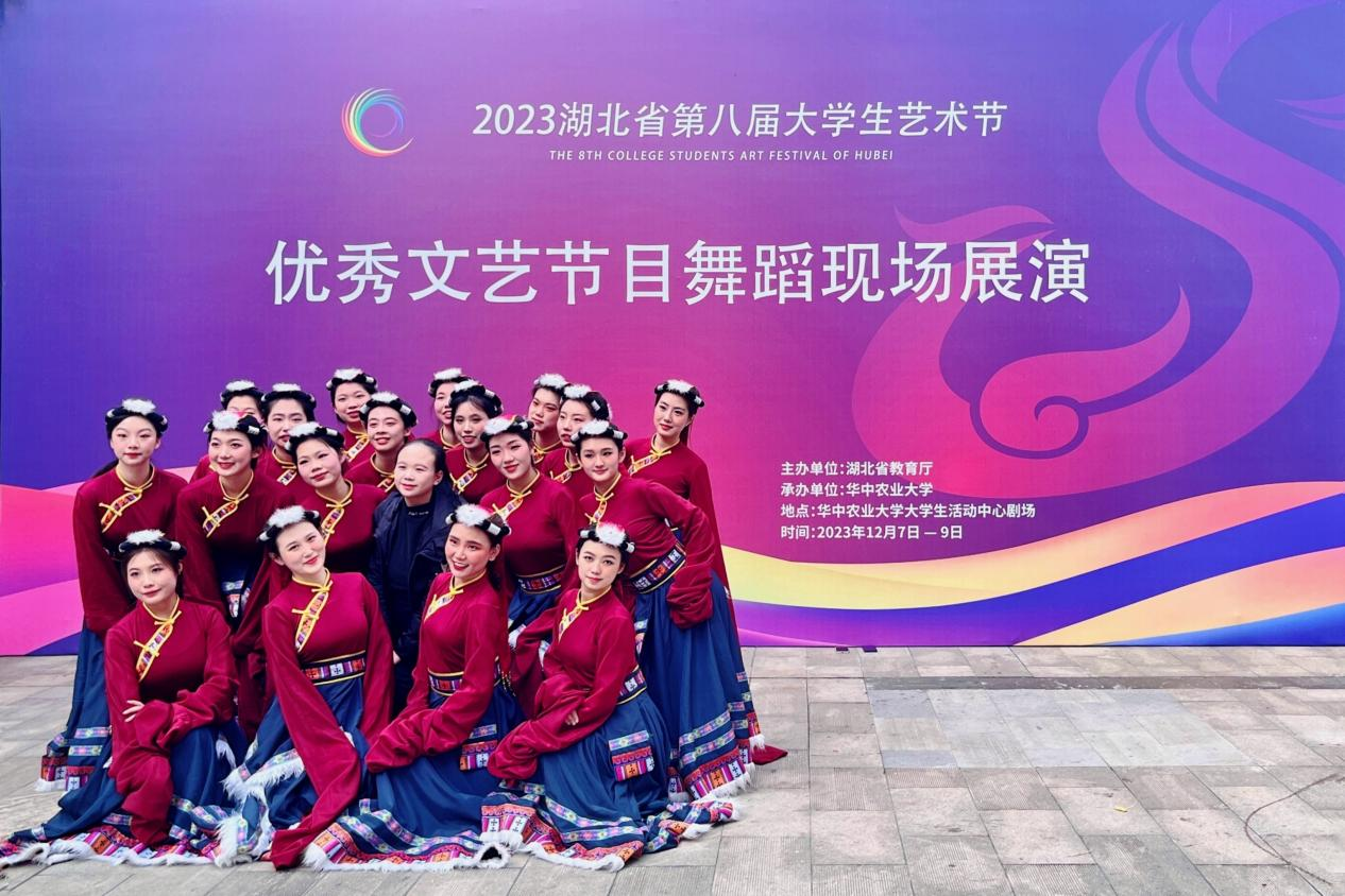 2023年12月8日-9日,由胡万丽老师指导的舞蹈节目《心声》和胡蒙老师指导的声乐节目《木叶吹呀吹》分别赴华中农业大学和中国地质大学(武汉)参加第八届大学生艺术节优秀文艺节目展演。