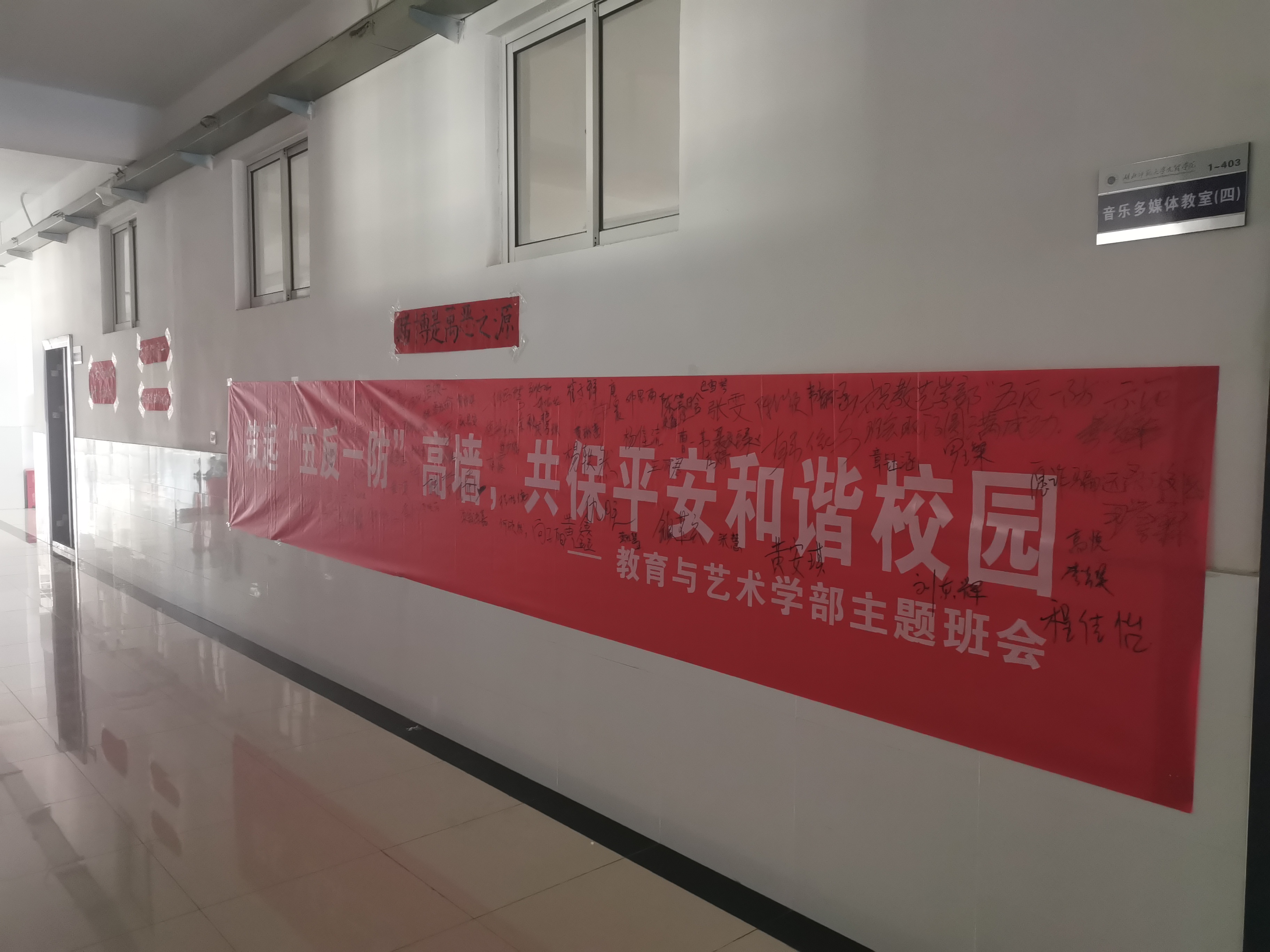 为进一步增强学生的安全防范能力,保障学生生命财产安全,使反诈骗、反失信、反酗酒、反赌博、反夜不归宿及防溺水等安全意识深入人心,按学生工作部的工作安排,5月24日下午2:30,23级小学教育专业组织开展题为“筑起‘五反一防’高墙,共保平安和谐校园”主题示范班会。