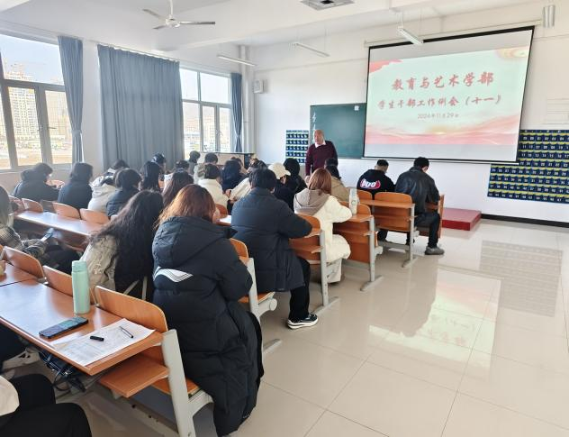 2024年11月29日中午12:00在实验楼1-403多媒体教室组织召开学生干部工作例会,全体辅导员、团学会干部、各专业班级负责人与会,例会由总支书记李先华主持。