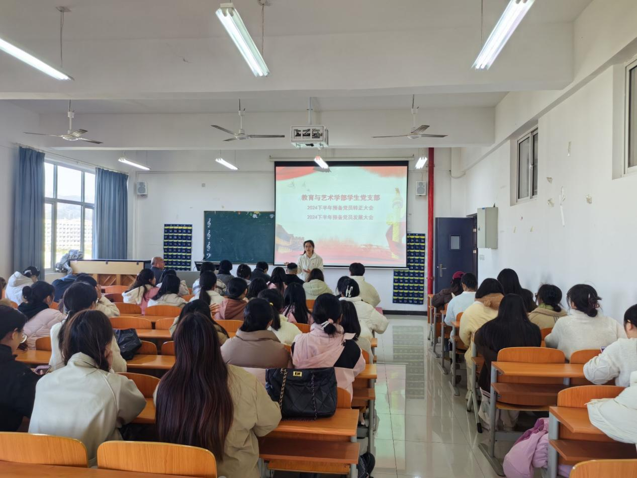 为进一步规范党支部建设,做好发展党员工作,切实提高学生党员发展质量,增强党员队伍的生机与活力,教育与艺术学部学生党支部于2024年12月2日中午12:00,在实验楼1-401组织召开学生党支部大会,讨论杨璨宇等12名同志转为正式党员和刘明等15名同志成为发展对象的问题,党员转正、发展对象的入党介绍人以及学生党员参加,会议由学生党支部书记孙盼蕊同志主持。